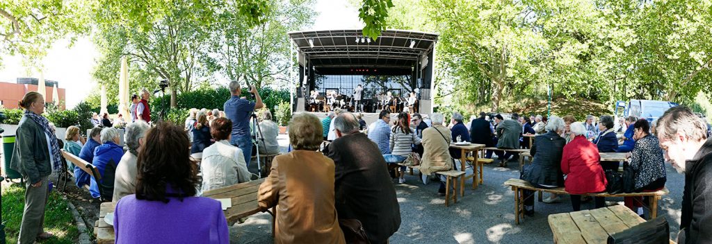 Unser spätsommerlich-sonniges Open-Air-Konzert im Kurpark. Diesmal bildeten Orchester I und II ein gemeinsames Vereinsorchester. Schön wars!