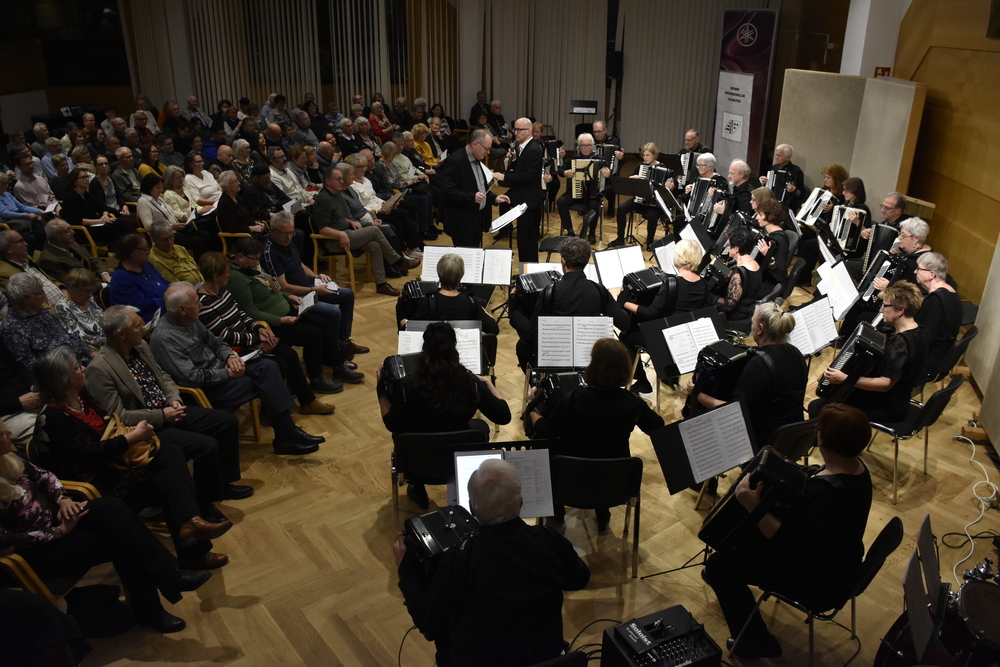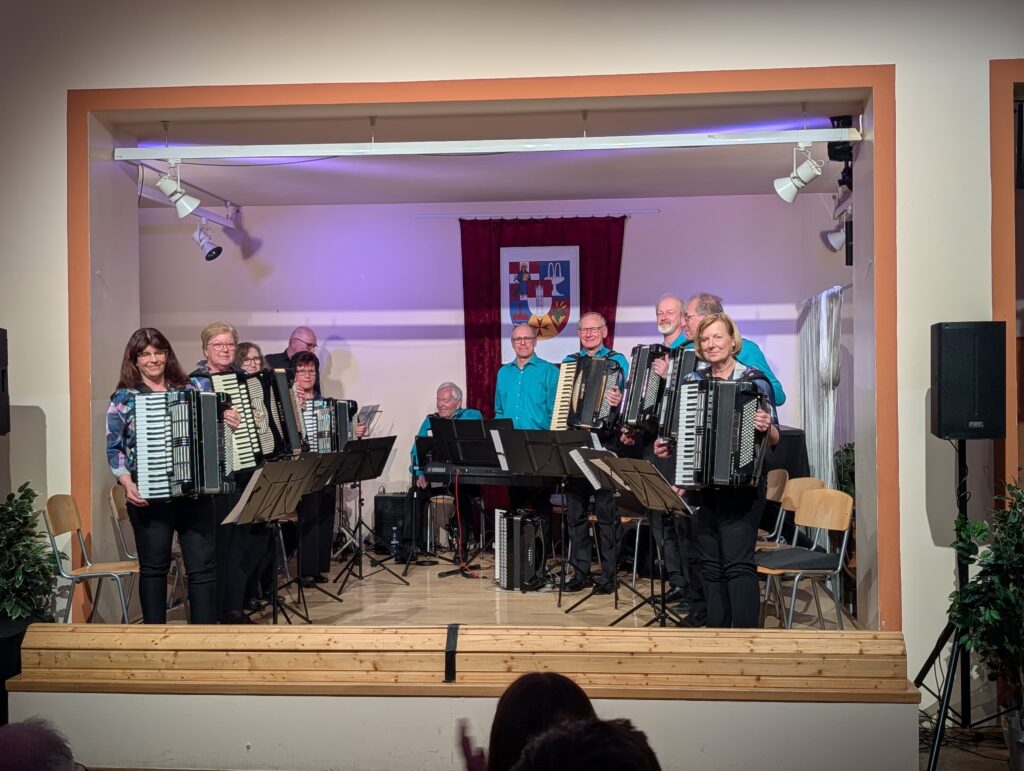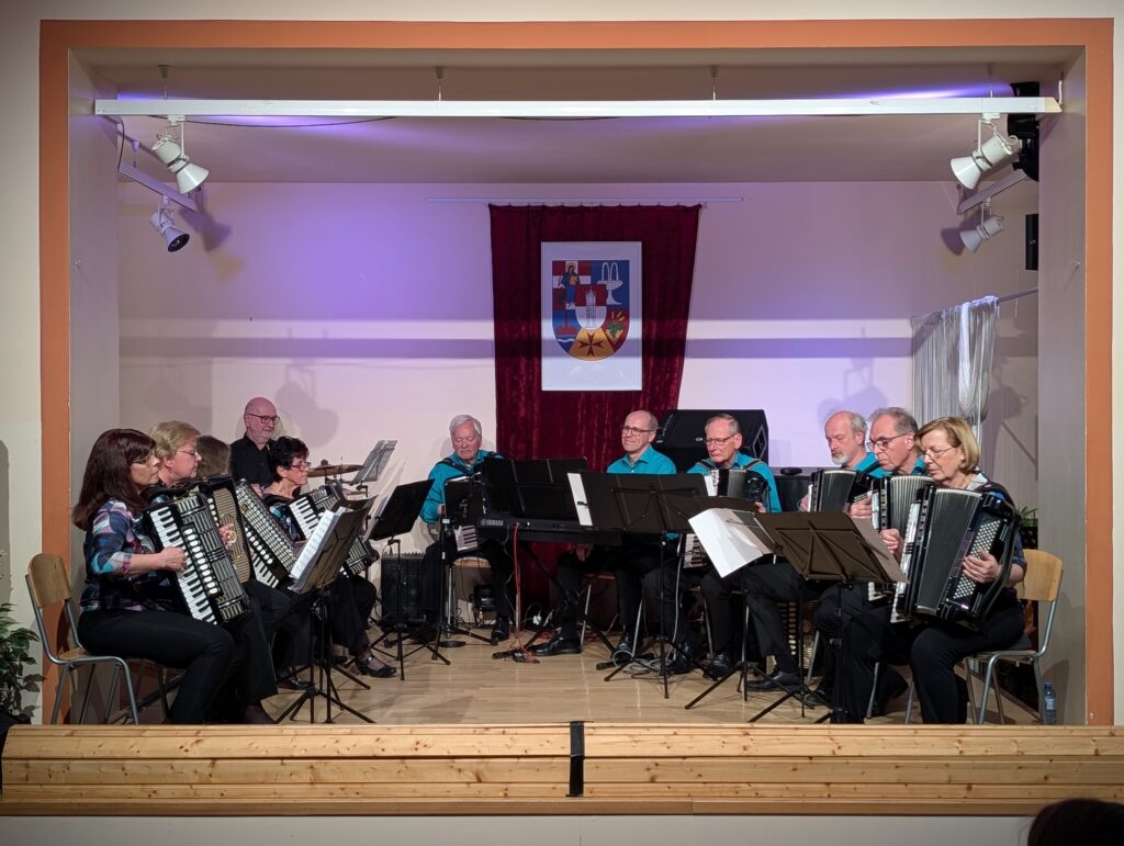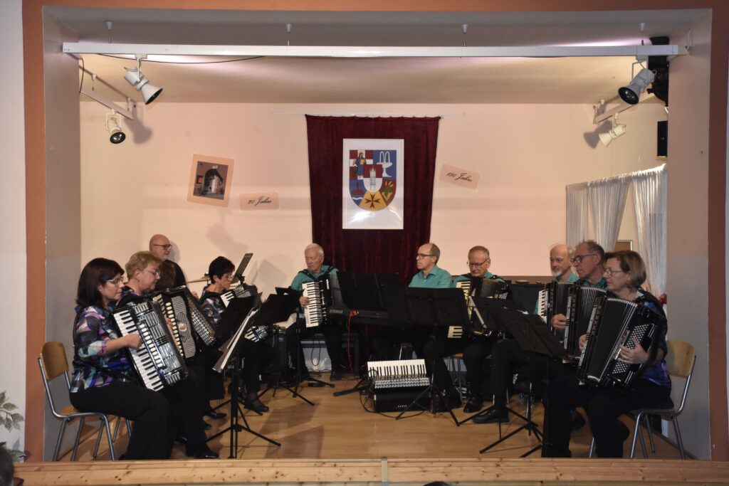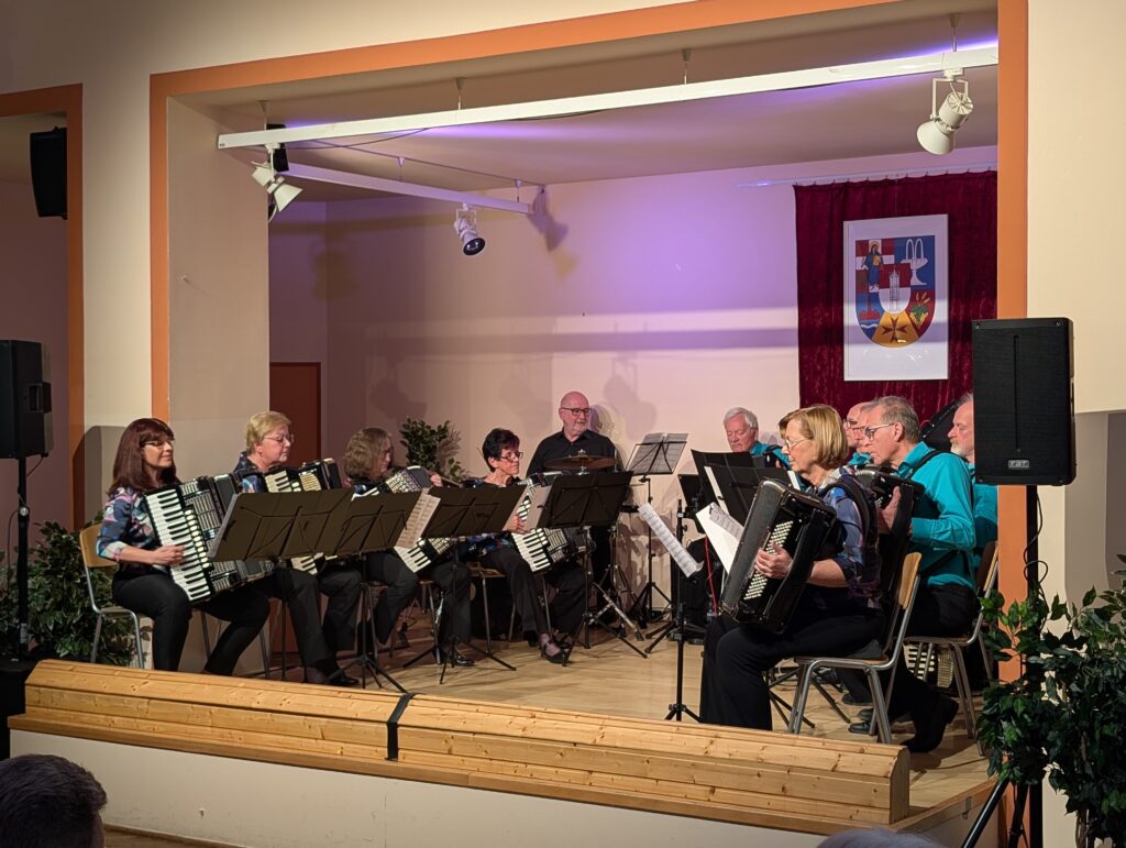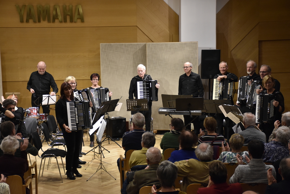 Am 27. April fand unser „Tribute“-Konzert statt. Im Vordergrund standen Musikstücke, die wir mit besonderen Erinnerungen an unseren Gründer und Ehrendirigenten Prof. Walter Maurer verbinden. Dazu gehörten z.B. „Salto mortale“, das wohl am öftesten gespielte Stück, „La Storia“ und die „Slavonska Rhapsodija“, mit welchen wir bei Wettbewerben angetreten sind, Bearbeitungen von Mozart und Strauß und natürlich die „Akkordeonfreunde“, eine Komposition, die uns Walter Maurer gewidmet hat. Besonders gefreut haben wir uns über das Geigensolo von Silvia Schwinger, Walter Maurer´s Enkelin (Konzert in G von Antonio Vivaldi). Außerdem haben wir unser Publikum mit auf eine Zeitreise genommen und Szenen nachgestellt, die im Akkordeonunterricht bei Prof. Walter Maurer so oder so ähnlich stattgefunden haben. Es war ein Abend voll schöner Erinnerungen an unseren Lehrer, Gründer, Dirigenten, Mentor, Wegbegleiter und Freund!